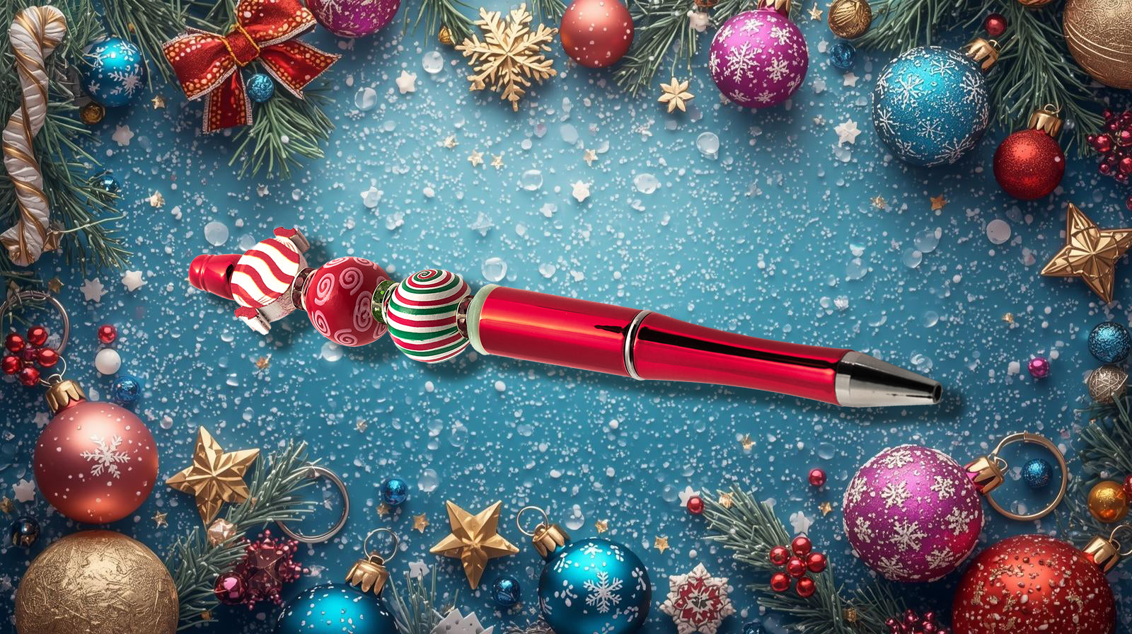 Ballpoint Pen - Blue Fluffy Beaded
